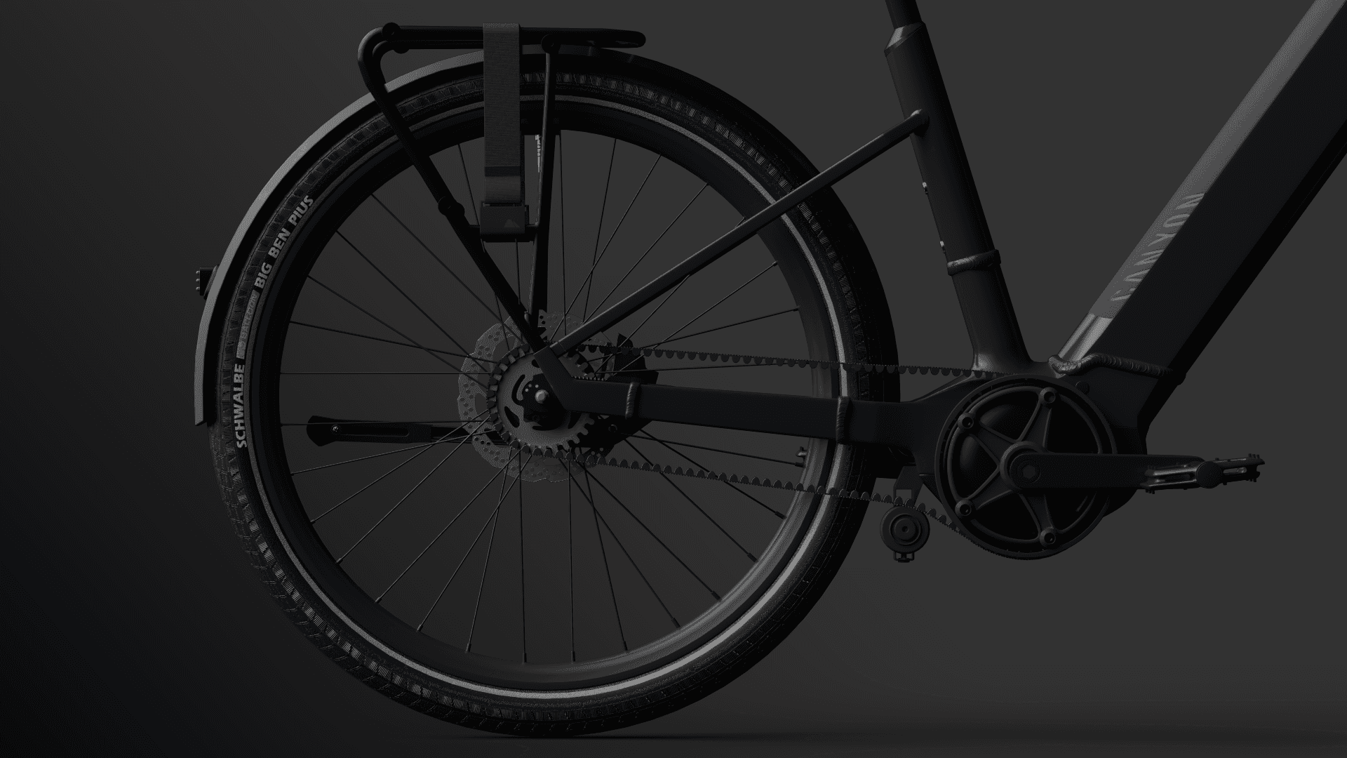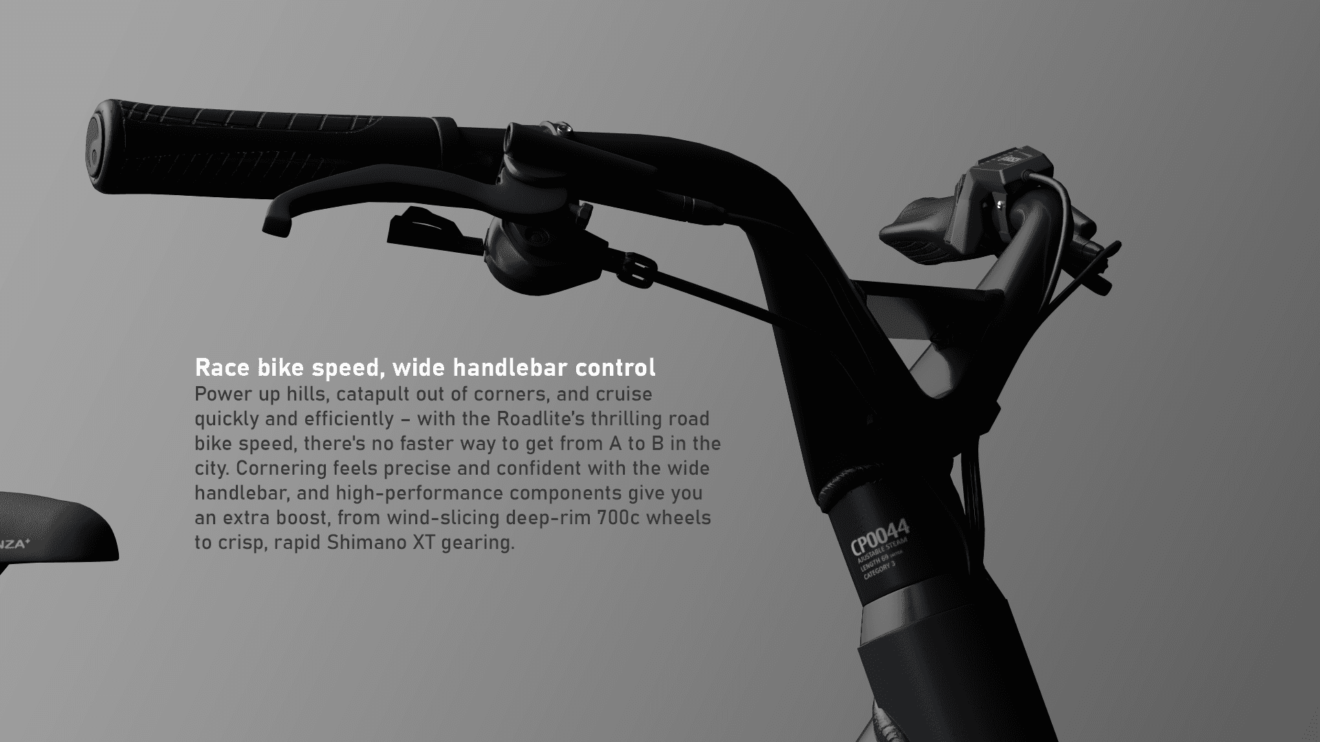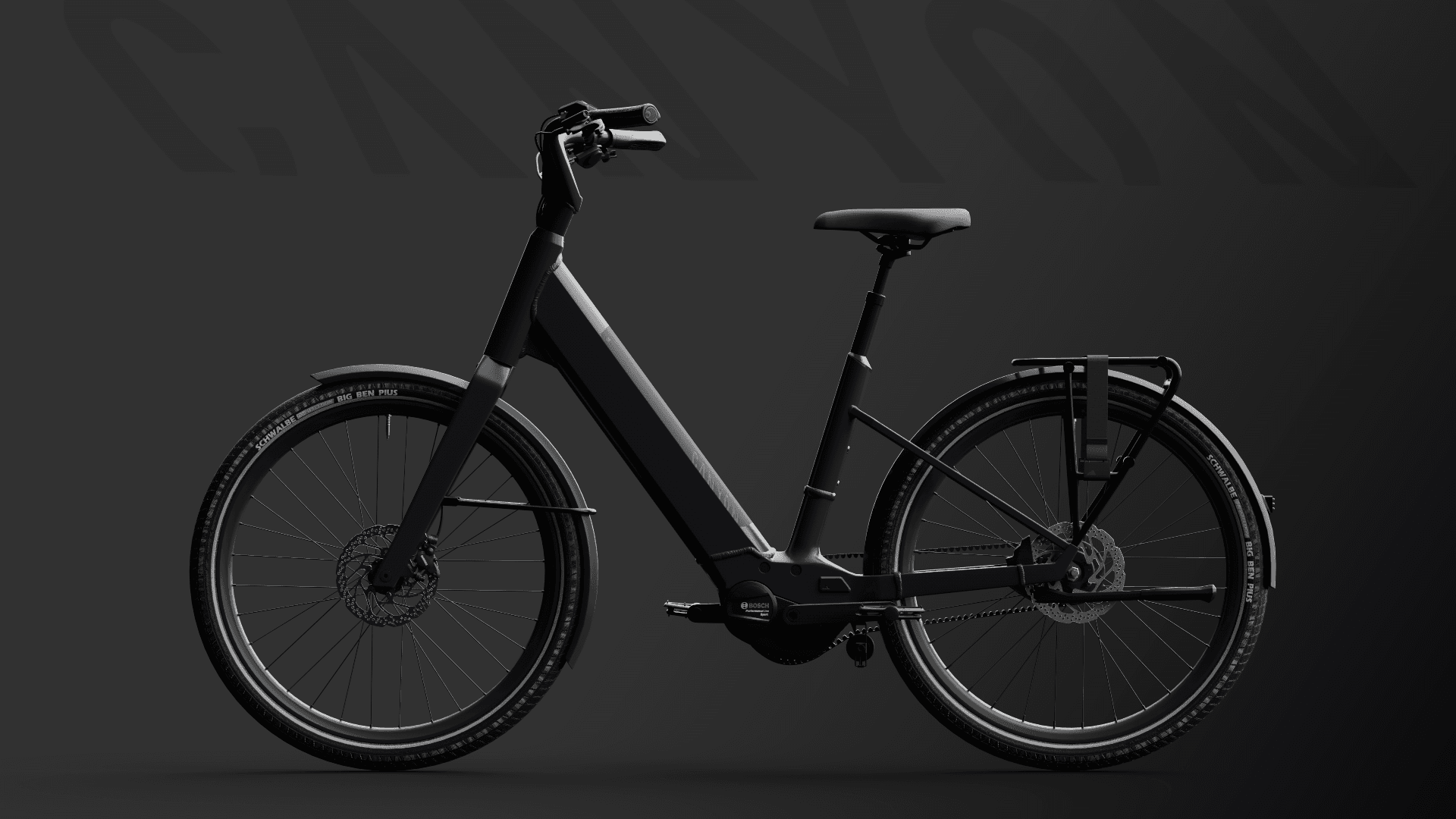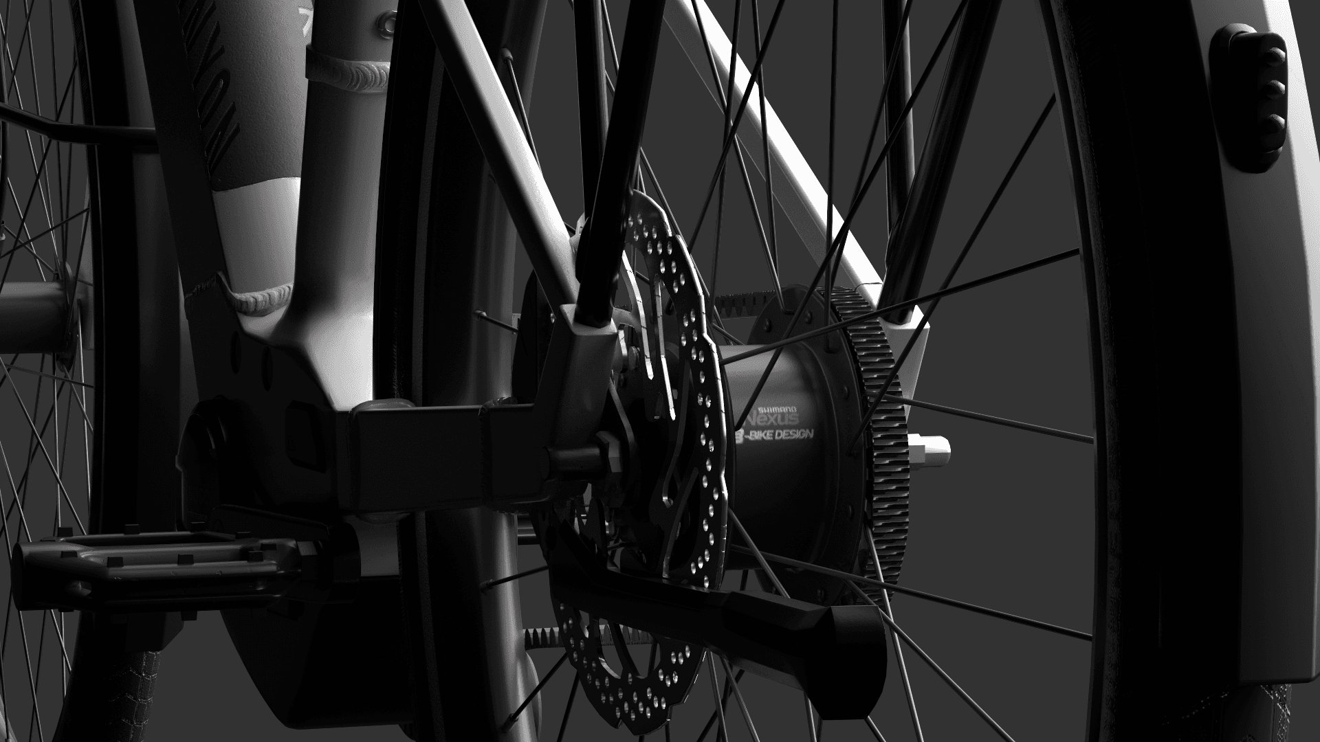 A series of close-up 3D renders of the Canyon Roadster bike set against a smooth grey or gradient background. The visuals highlight precision-engineered components—frame geometry, carbon fiber textures, drivetrain details, and aerodynamic design lines. Minimal text overlays complement the artwork, featuring key bike specs and performance notes, creating a modern, premium product-design presentation.